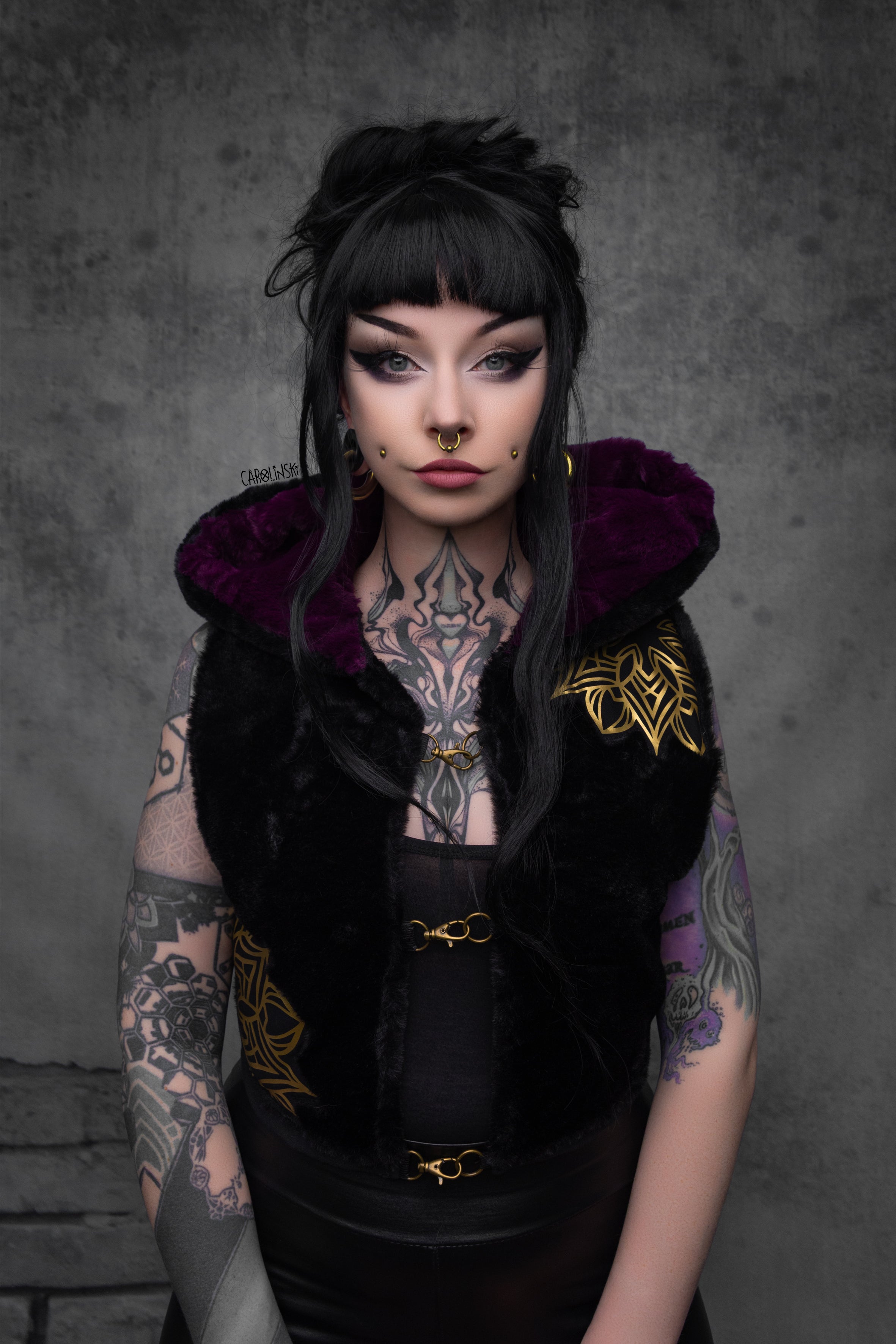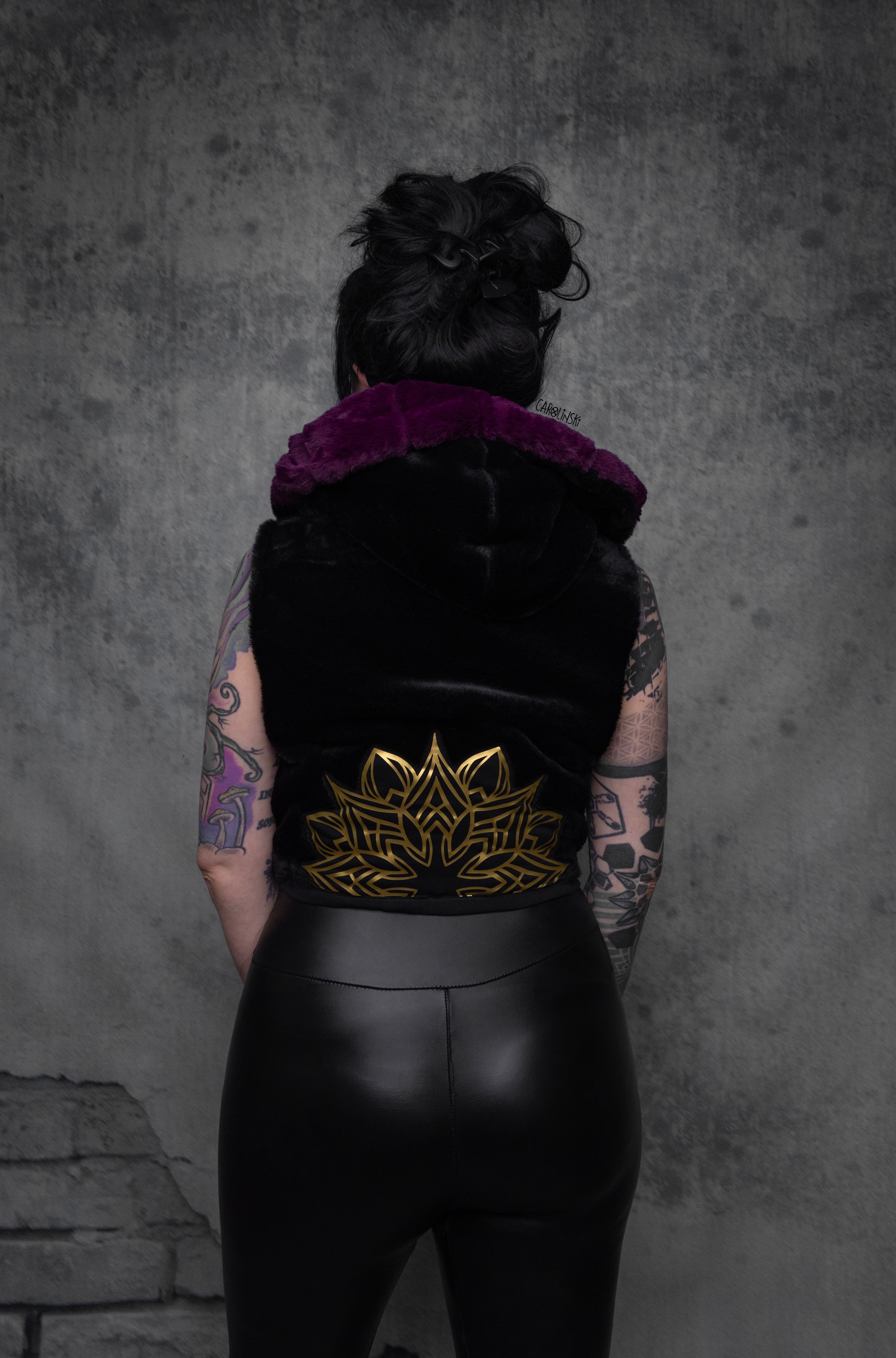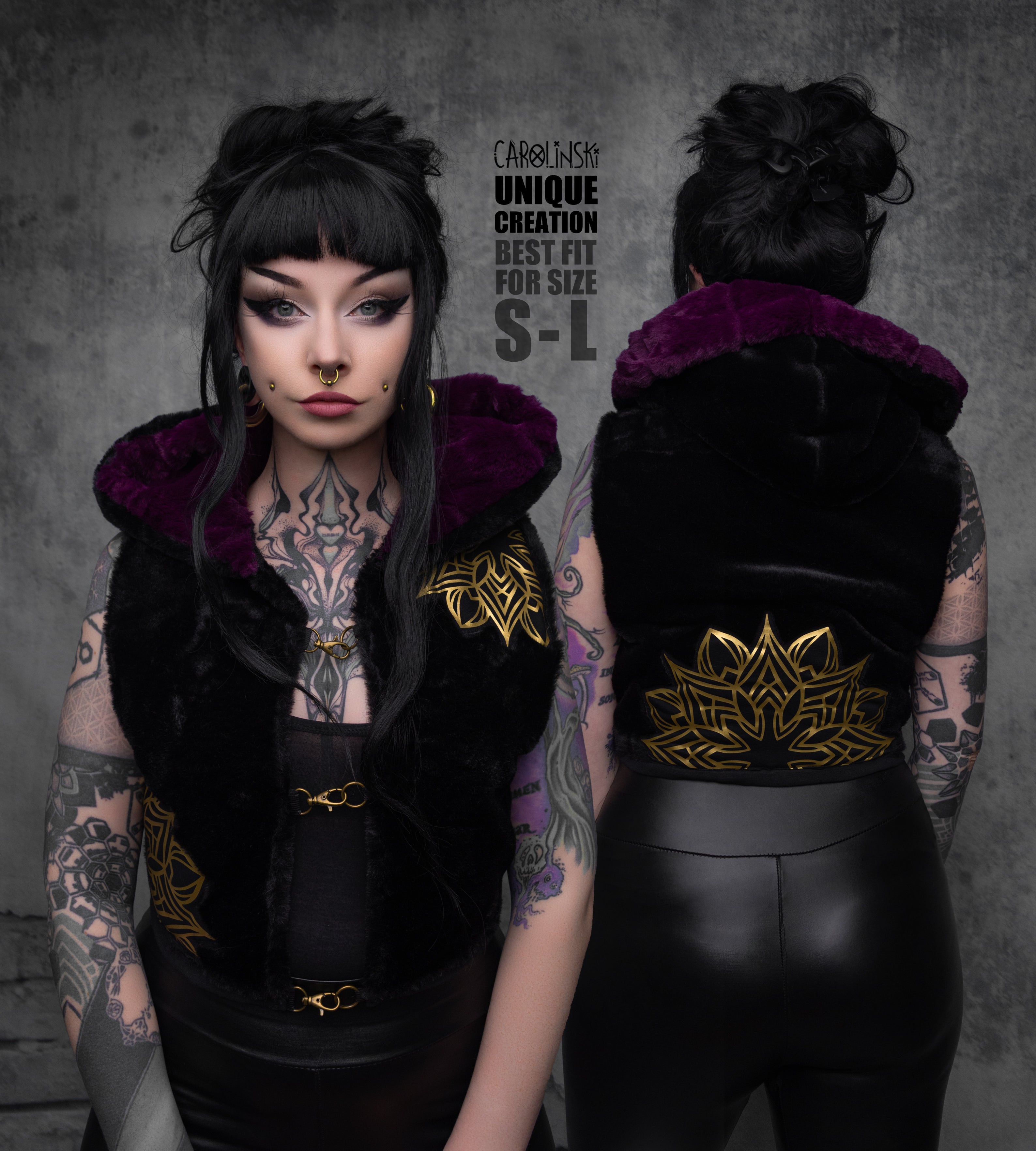 Huge hood with aubergine lining and pockets turn this creation into a must-have.