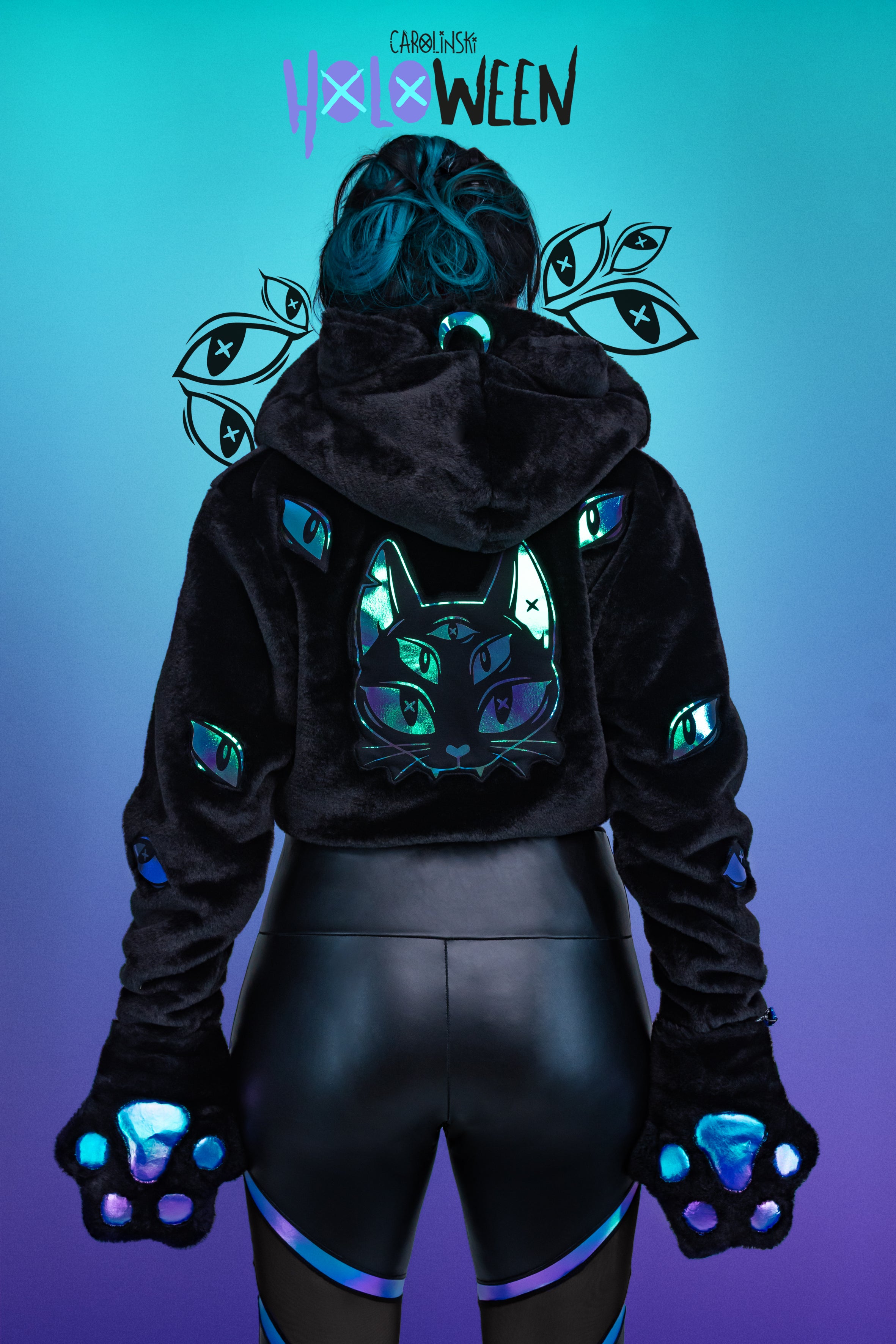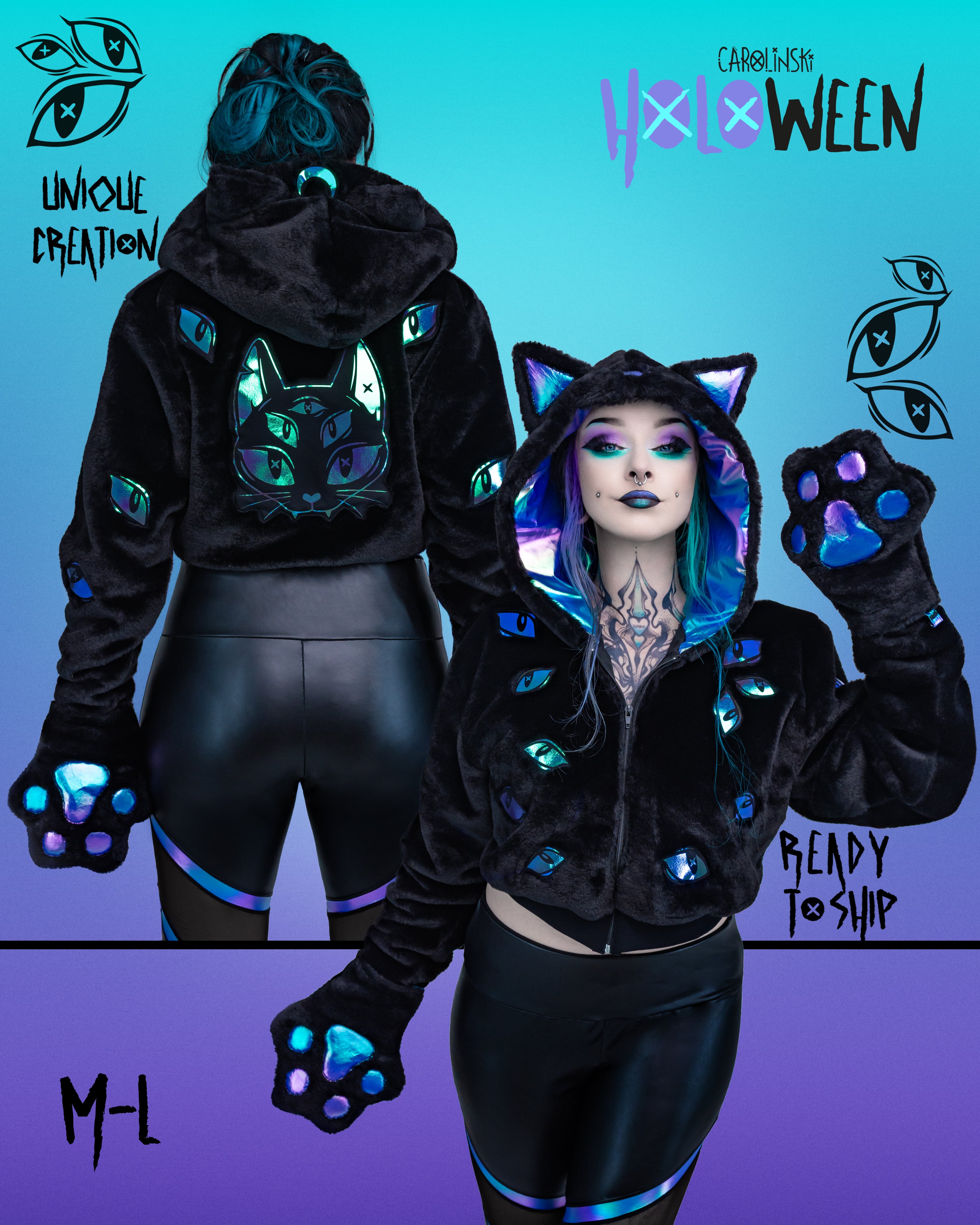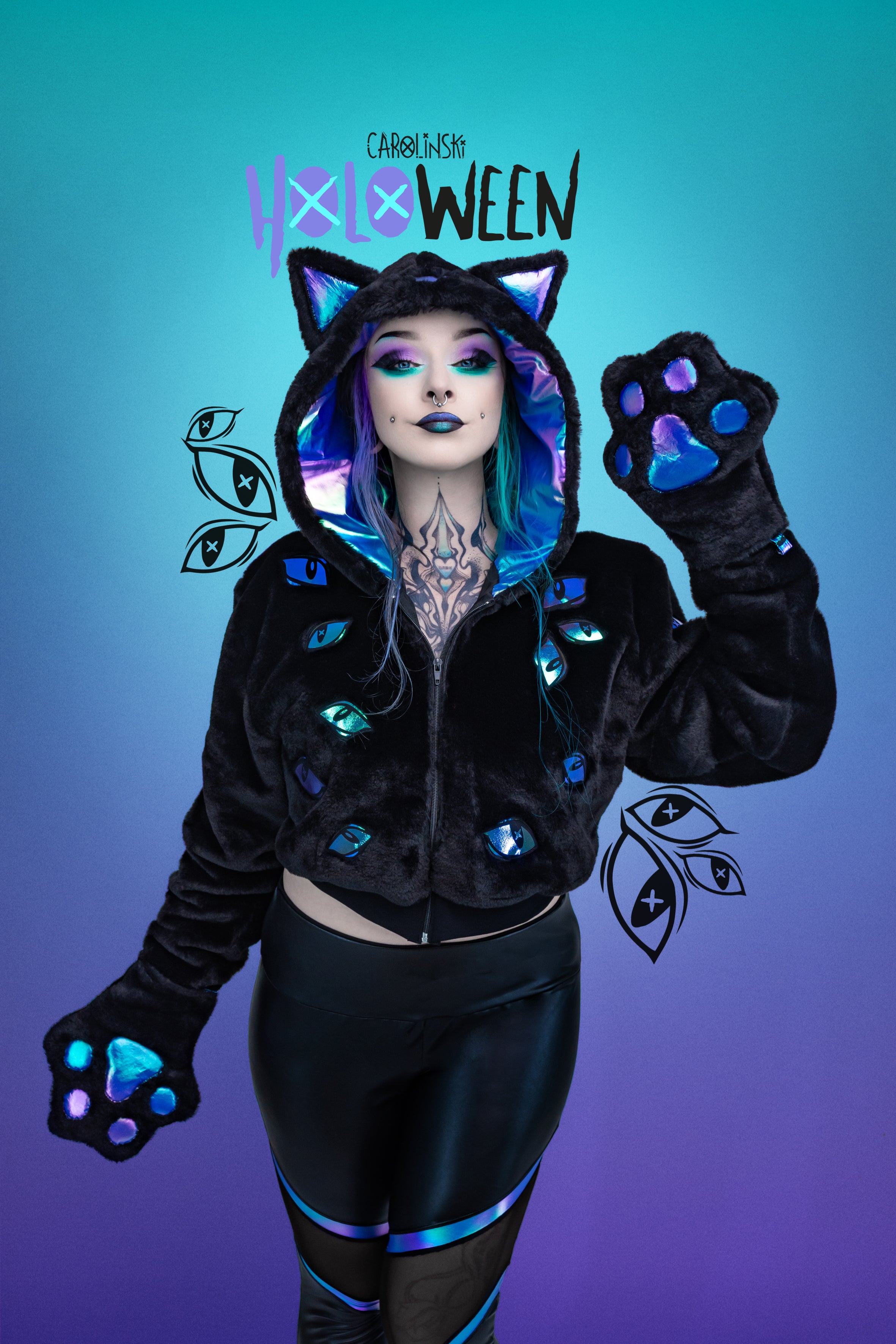 Turn yourself into a trippy black cat with this wonderful high quality faux fur jacket.