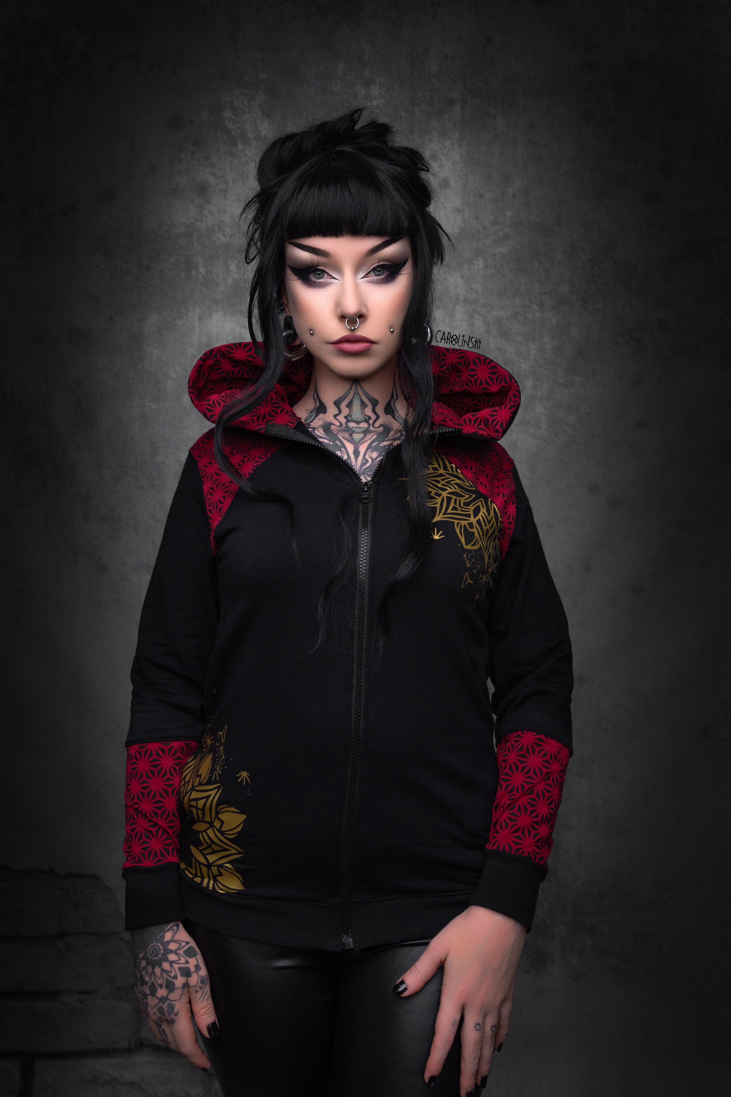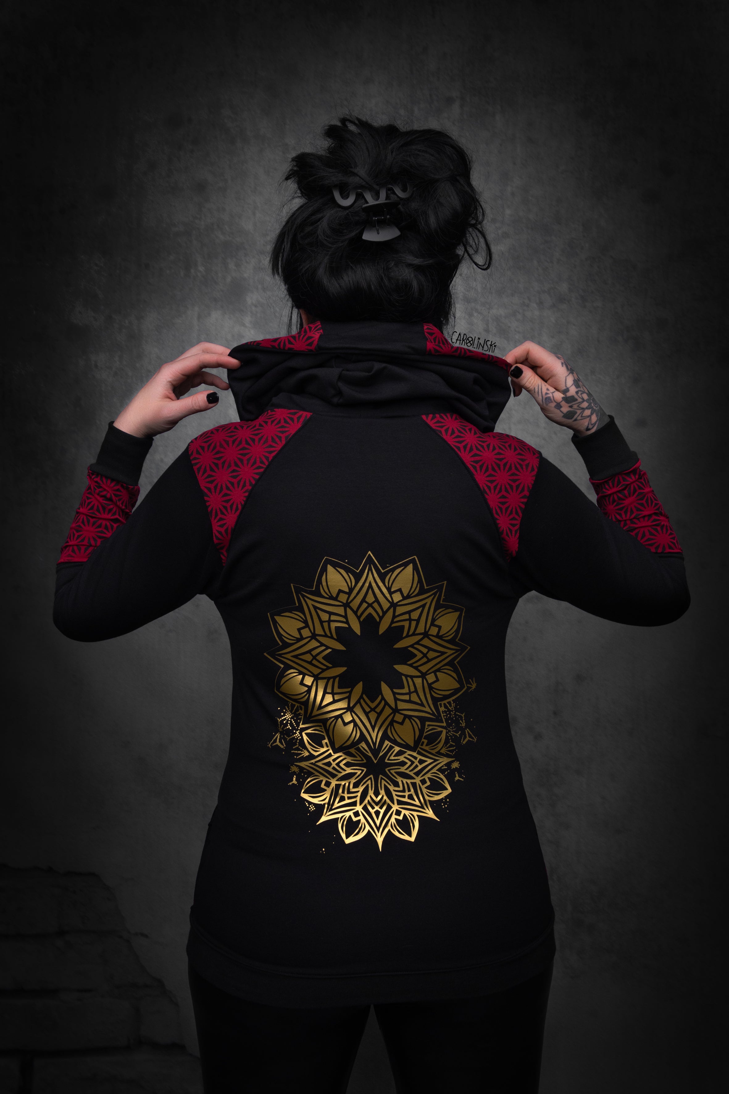 Zip Jacket - wine red gold geometric